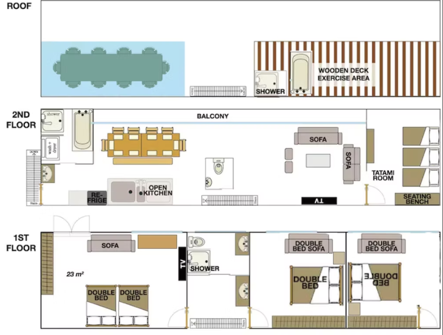 - ○3 樓:屋頂露臺+玻璃日光浴空間